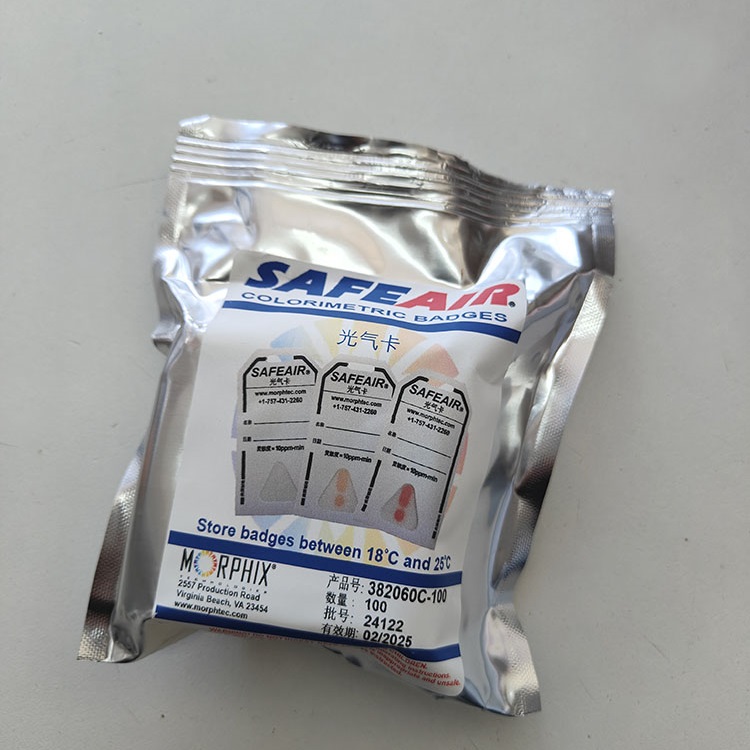 美国SAFEAIR光气检测卡(1包100个) 型号:3820606 库号:D348492 光气检测卡是一个监控系统,设计用于显示在低于允许暴露限度的浓度下存在。通过在三角形内部形成一个感叹号形状的颜色变化来检测光气的存在。